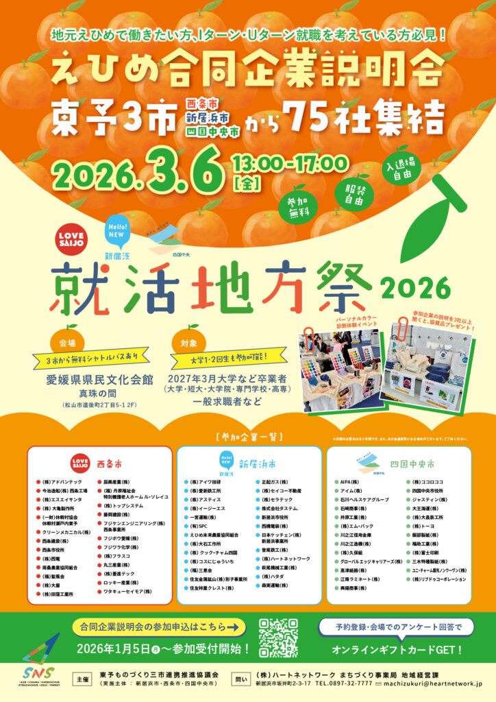 「就活地方祭2026(えひめ合同企業説明会)」に参加します。